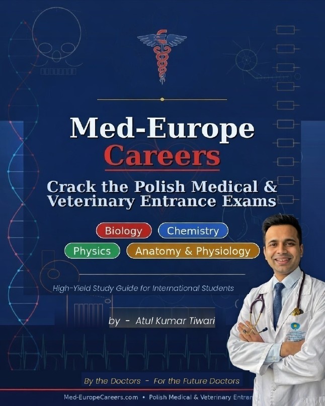 Med-Europe Careers: Crack the Polish Medical & Veterinary Entrance Exams — a handwritten labour of love representing years of academic study and hands-on teaching experience across European medical universities. Every page, diagram, and practice question was carefully crafted from scratch by medical professionals who have lived this journey. Covering Biology, Chemistry, Physics, and Anatomy & Physiology — structured in progressive modules with three-tiered practice questions (Easy, Medium, Hard), complete answer keys, and detailed explanations.